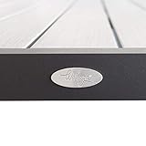 Der Wohaga Gartentisch besteht aus einem schwarzen Aluminiumrahmen mit einer silbergrauen Polywood-Tischplatte, wodurch er sich hervorragend für den Einsatz im Outdoorbereich eignet, Polywood ist ein Kunstoff ähnliches Material mit Holzprägung, welches keine zeitaufwändige Pflege benötigt und…
